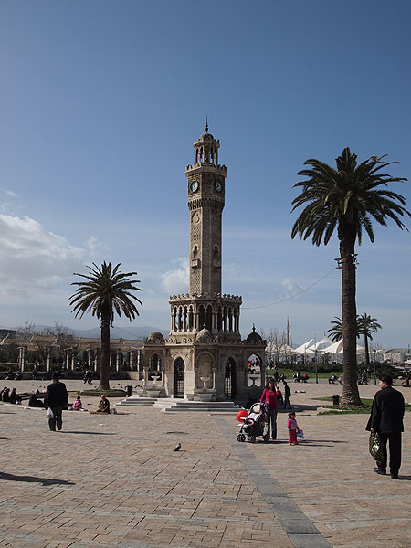 Izmirin maamerkkinä pidetty kellotorni Konakin kaupunginosassa.