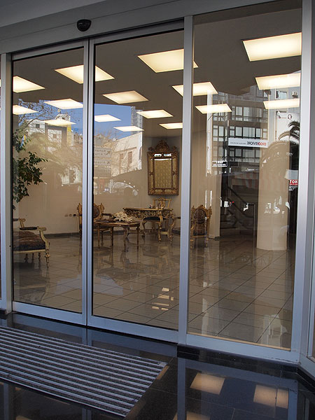 Sisältä myymälät ovat isoja ja viimeisteltyjä.