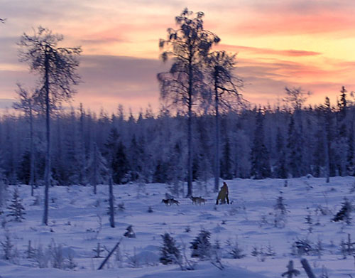 Koiravaljakkoajelua Iso-Syötteellä. Tämän kuvan ottamista ihanampaa olisi ollut vain istua itse kyydissä.
