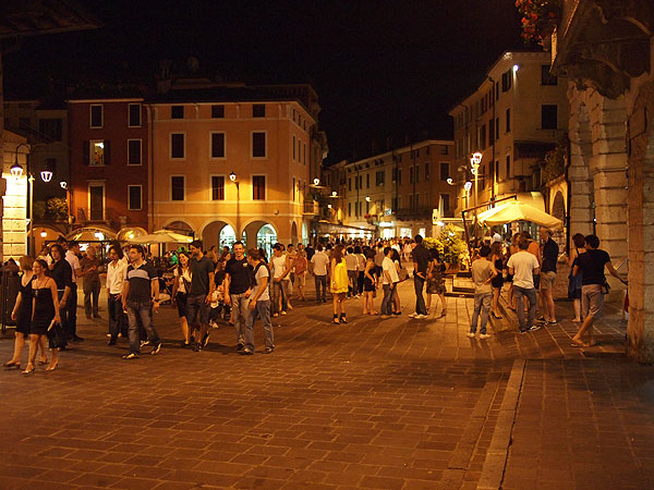 Illan tullen Desenzanon kadut täyttyvät Italialaisista viikonloppuvieraista.