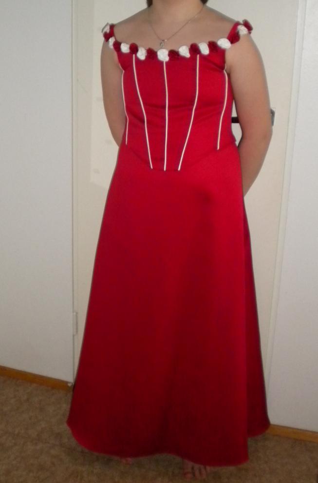 Myydään morsiustytön pitkä mekkomerkkiä Forever yours. Mekko on kuvan mukaisesti punainen, jossa on valkoiset päärmeet edessä. Kauluksessa pieniä punaisia ja valkoisia satiini ruusuja. Mekko on kooltaan 12. Riippuen lapsen koosta, tarkoitettu 9-vuoden iästä 12 ikävuoteen. Tarkemmat mitat voin laittaa tulemaan ja myös sovittamaan pääsee  Yhteydenotot [email protected]